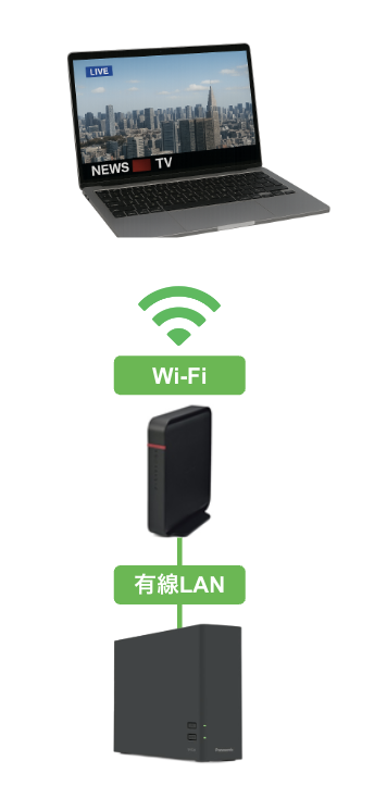 Wi-Fiが届く範囲でしたらパソコンをどこに置いても、テレビ番組視聴が可能です。