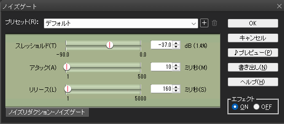 - 「エフェクト」メニューから「ノイズリダクション」を選択。
