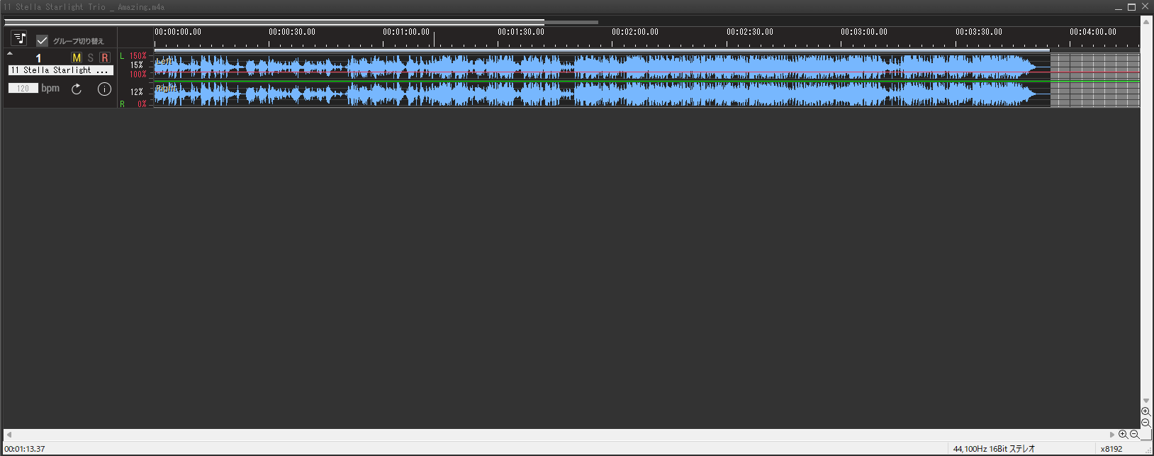 ソフトを立ち上げ、編集したい音声ファイルをドラッグ&ドロップするか、オーディオインターフェース経由でアナログ音源を録音します。