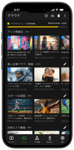 アップロードが完了したらすると、クラウド画面に動画一覧が表示されます。再生リストごとに動画が表示されるので、自分好みのプレイリストとしても活用いただけます。