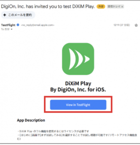 メール件名:「DigiOn, Inc. has invited you to test DiXiM Play.」